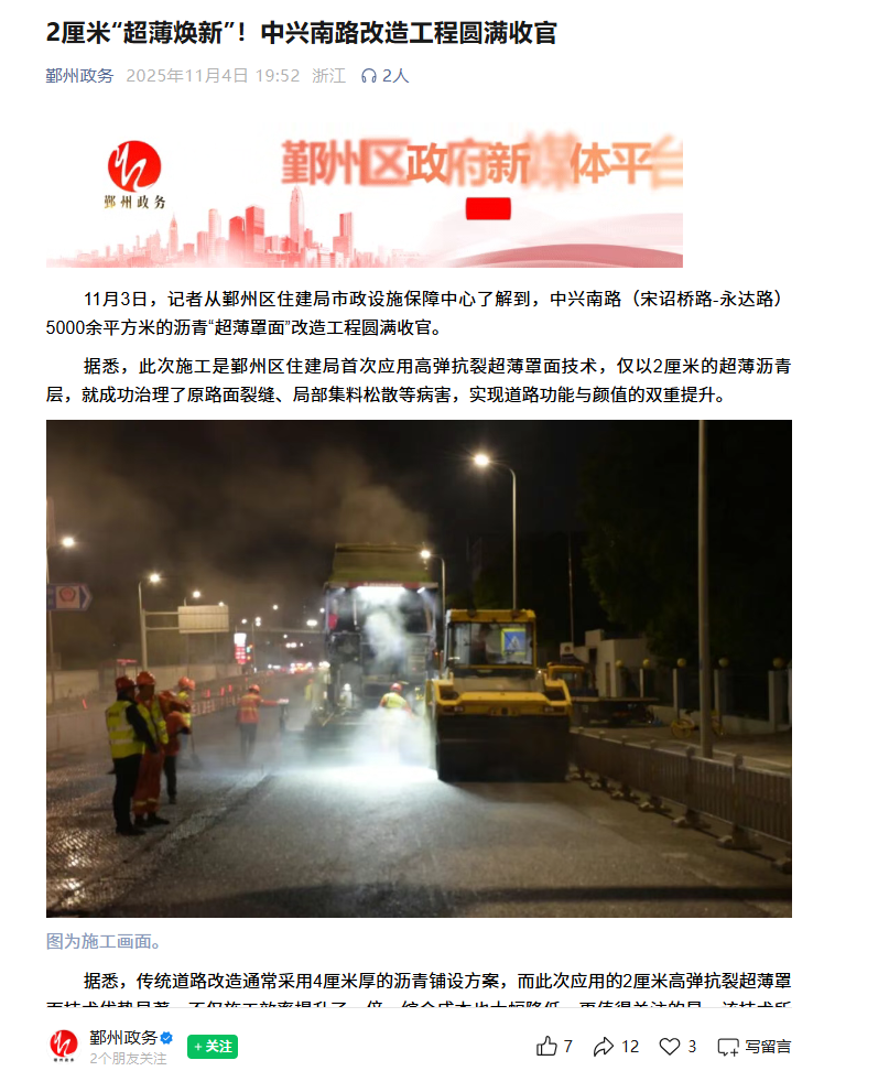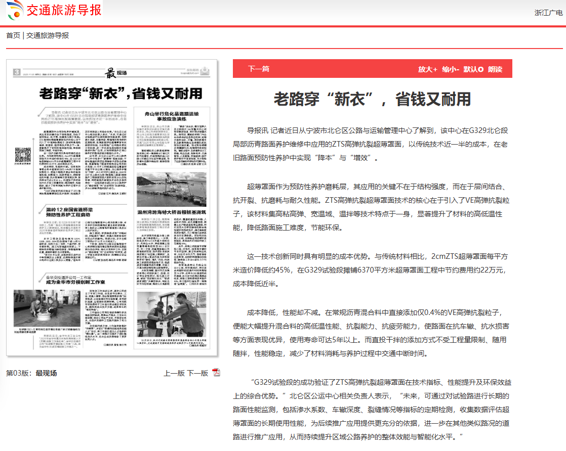 官方报道 | ZTS高弹抗裂超薄罩面技术